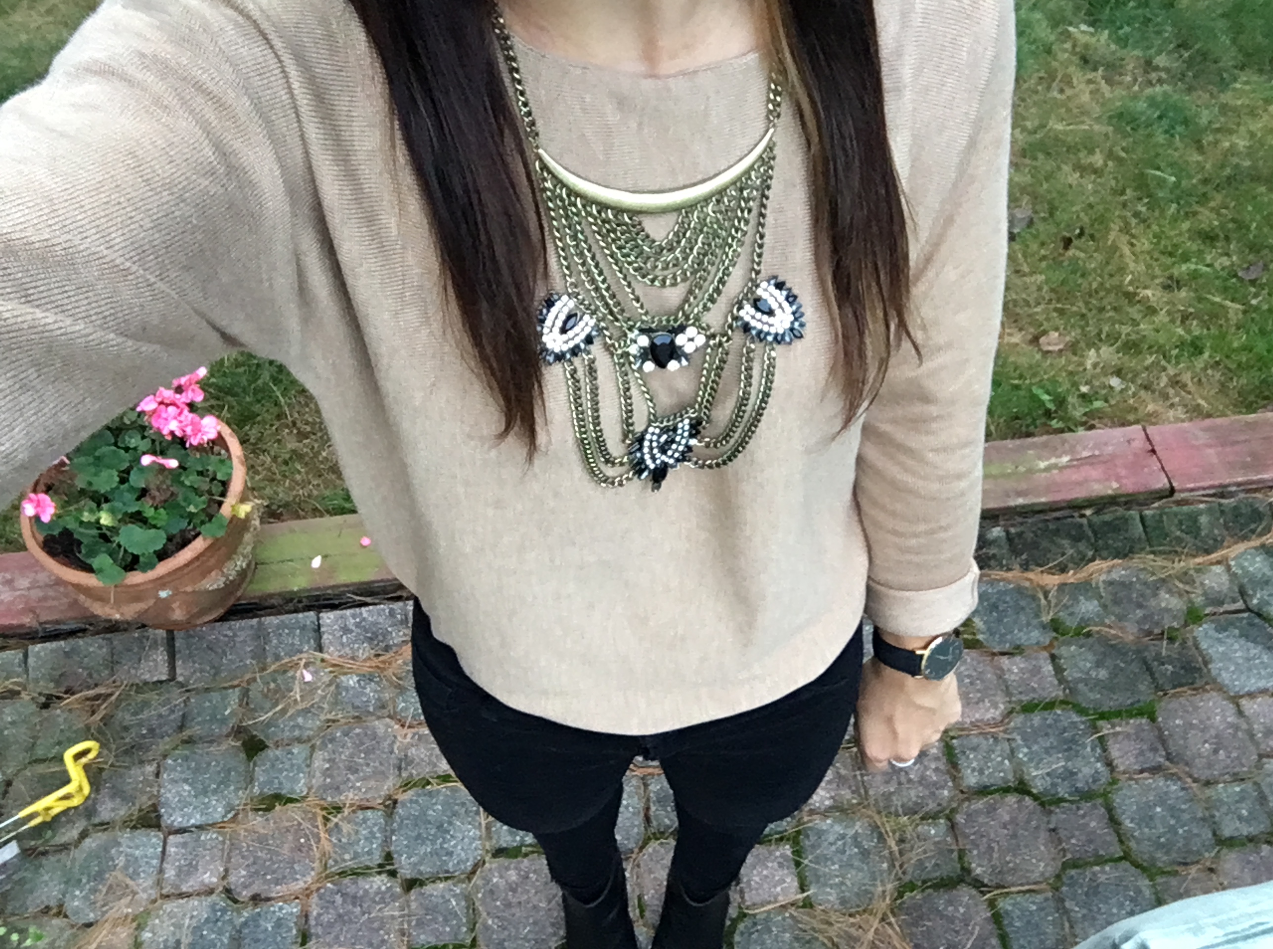 Since it’s officially fall and we’re a few days away from October, I thought I’d pull out a sweater to wear. π I’m absolutely IN LOVEΒ with this look. To be honest, it wasn’t even what I had originally planned on wearing and I put it together last minute, so I’m pretty happy with the way it turned out. π Anyways, this sweater from Macy’s is a closet staple and it’s such a great color and it comes in others as well! Yes, it’s a bit more on the expensive side for a sweater but let me tell you, if you properly care for it, this sweaterΒ will last. I brought Dolce with me too as she makes for a great accessory π By the way, I also made a Twitter account for my blog so check it out @nicolesdreamcloset. I hope you guys enjoy!! π